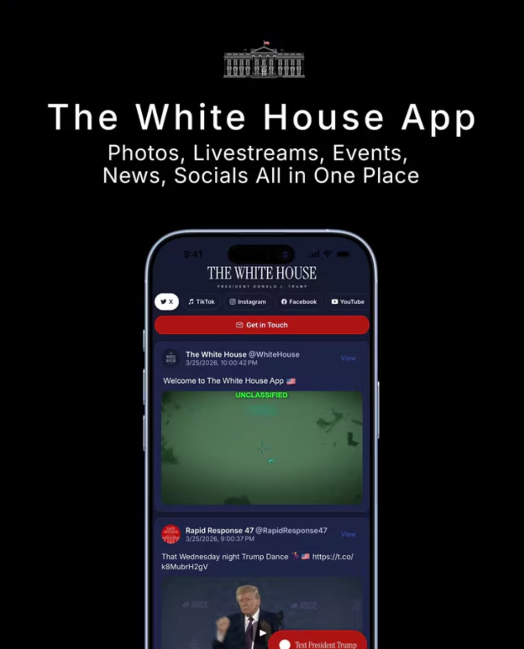 The White House -- “New White House App Delivers Unparalleled Access to the Trump Administration” (https://www.whitehouse.gov/releases/2026/03/new-white-house-app-delivers-unparalleled-access-to-the-trump-administration/)
